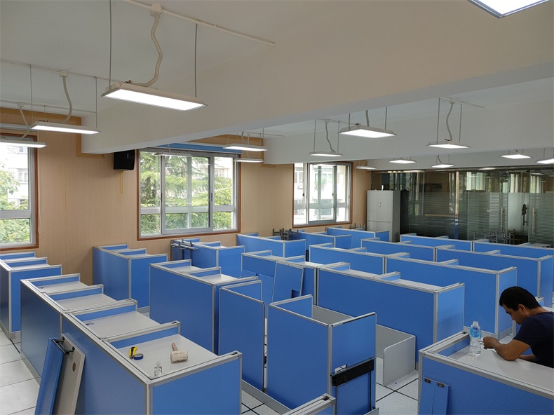 項(xiàng)目地點(diǎn): 上海滬東外國(guó)語(yǔ)學(xué)校 項(xiàng)目時(shí)間: 2020年8月 項(xiàng)目背景: 面對(duì)國(guó)家招生考試制度改革下,普通考場(chǎng)不能滿足需求,臨時(shí)增加建造多個(gè)考試專用考場(chǎng),在時(shí)間和資金方面都不現(xiàn)實(shí)。所以需要一種屏風(fēng)擋板可以升降的電腦桌,來解決標(biāo)準(zhǔn)化考場(chǎng)與計(jì)算機(jī)語(yǔ)音教室的切換使用,實(shí)現(xiàn)一個(gè)教室多用途的解決方案。 主要功能: 根據(jù)上海滬東外國(guó)語(yǔ)學(xué)校對(duì)教室使用需求,在產(chǎn)品設(shè)計(jì)方面,電腦桌的左、右、前三面帶升降屏風(fēng)擋板,用于隔斷相鄰考生視線。當(dāng)屏風(fēng)升起時(shí),可以用作教室語(yǔ)音標(biāo)準(zhǔn)化考試使用,當(dāng)屏風(fēng)降下時(shí),可以用于學(xué)生上課使用。實(shí)現(xiàn)了一室多用、考學(xué)合一。 |