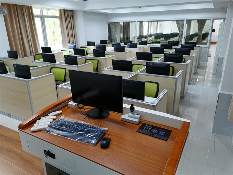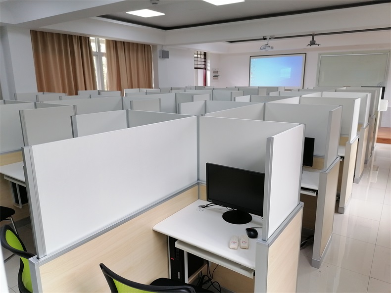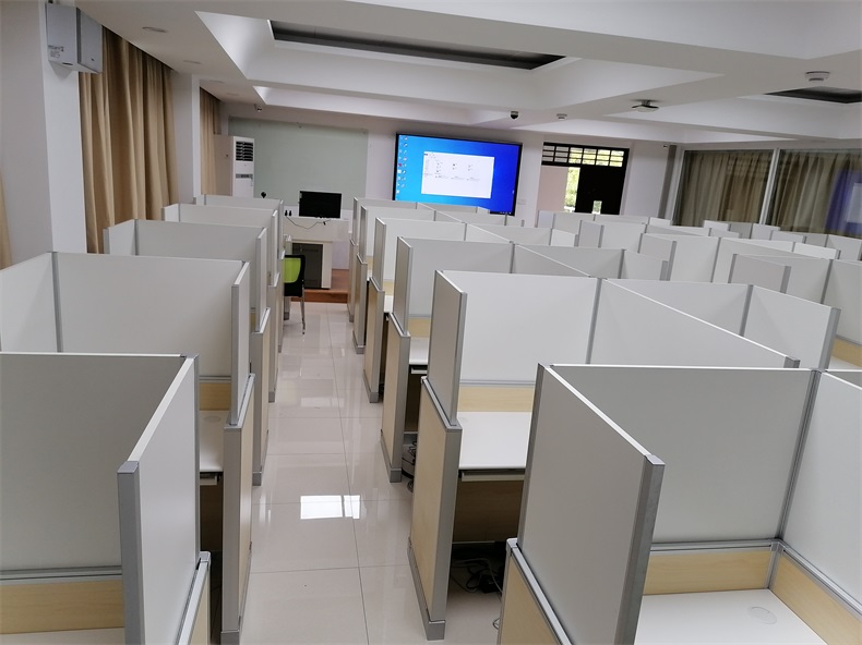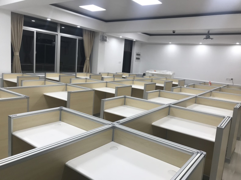 項目地點: 廈門大學-5間多功能語音升降屏風教室 項目時間: 2020年9月 主要功能: 根據廈門大學對教室使用需求,在產品設計方面,電腦桌的左、右、前三面帶升降屏風擋板,用于隔斷相鄰考生視線。當屏風升起時,可以用作教室語音標準化考試使用,當屏風降下時,可以用于學生上課使用。實現了一室多用、考學合一。 第二代升降屏風特點: 二代升降屏風傳動結構采用方方智能第二代屏風升降系統,具有傻瓜化安裝,升降系統獨立于家具(跟家具不產生關系)。傳動支點到每一塊升降板的末端,保證升降系統的絕對平衡,24V弱電電機,學生使用安全放心。該教室升降屏風桌,桌面高度90厘米,屏風上升高度可達到140厘米,隔斷屏風上升高度更高,隔音效果更好。 |