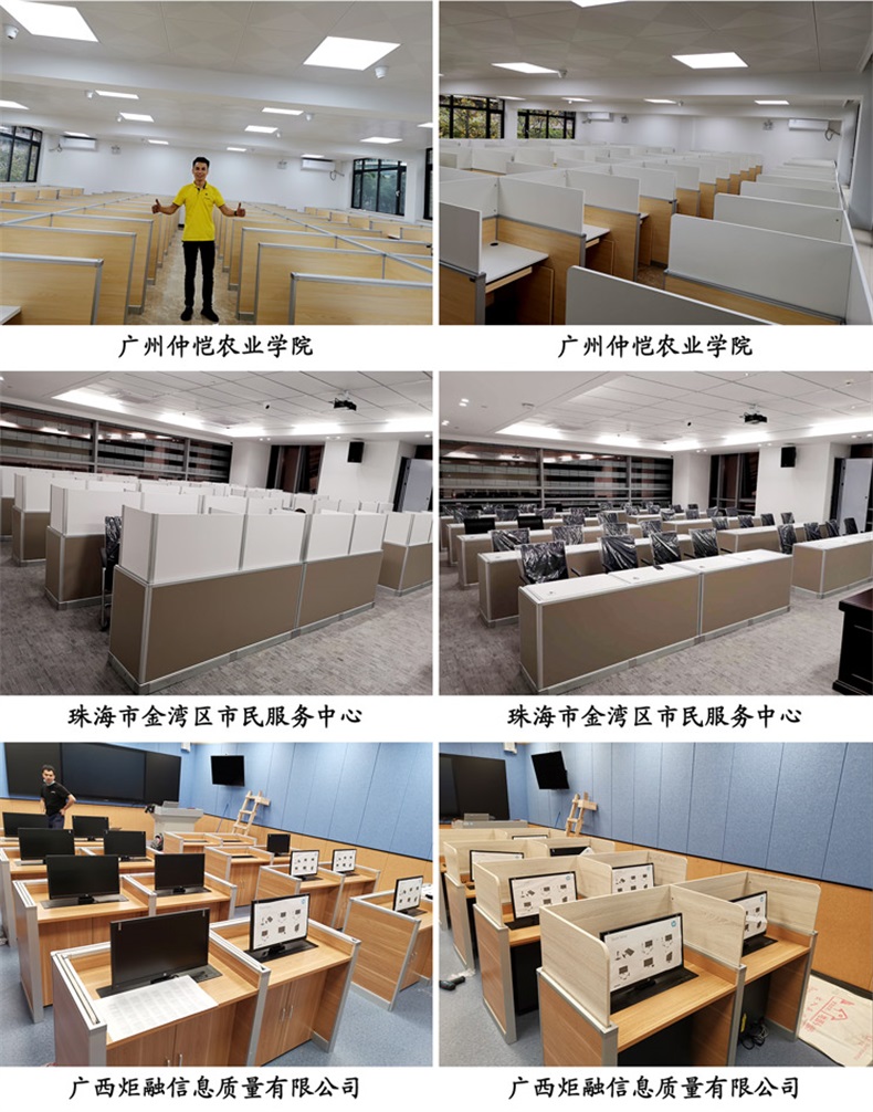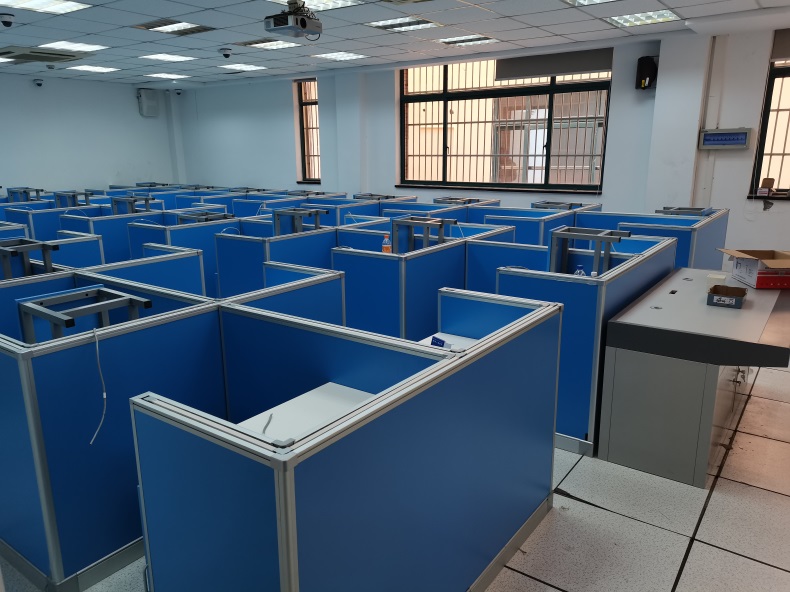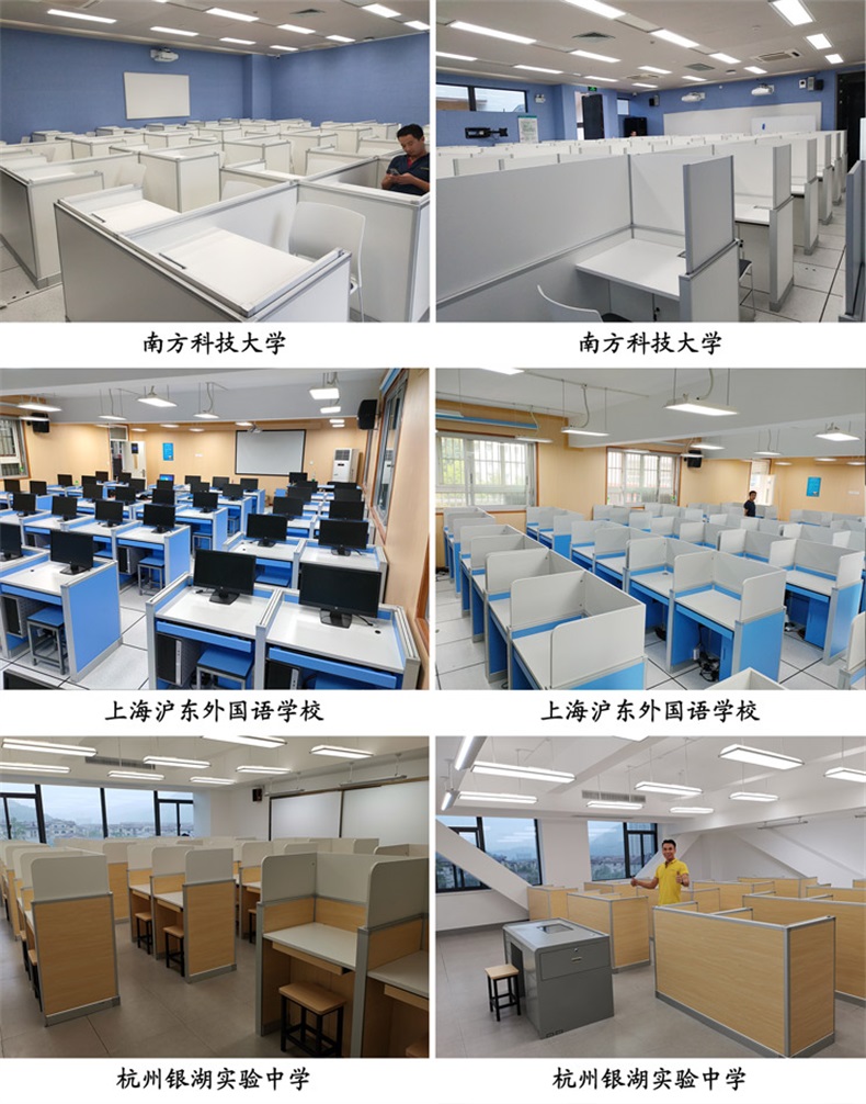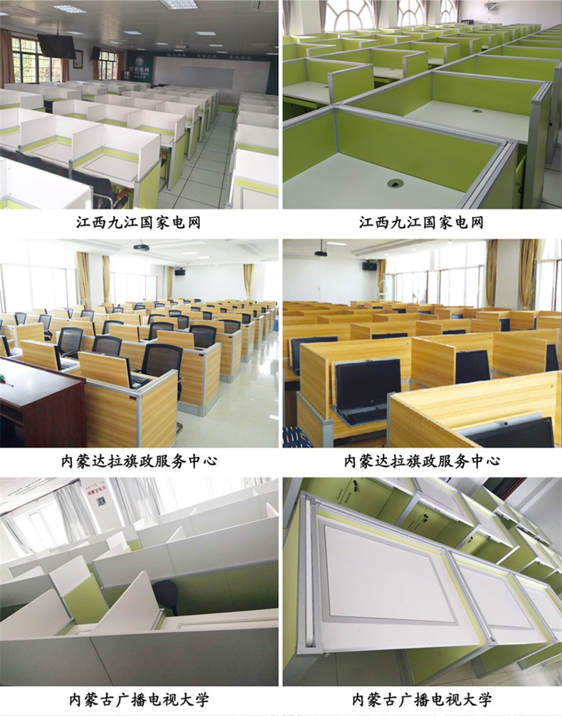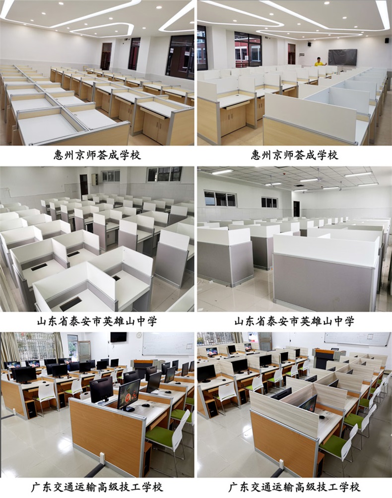 根據(jù)上海科技管理學(xué)校對測試實驗實訓(xùn)室和編碼實訓(xùn)室使用需求,在產(chǎn)品設(shè)計方面,電腦桌的左、右、前三面帶升降屏風(fēng)擋板,用于隔斷相鄰考生視線。當(dāng)屏風(fēng)升起時,可以用作教室計算機標(biāo)準(zhǔn)化考試使用,當(dāng)屏風(fēng)降下時,可以用于學(xué)生上課使用。實現(xiàn)了一室多用、考學(xué)合一。