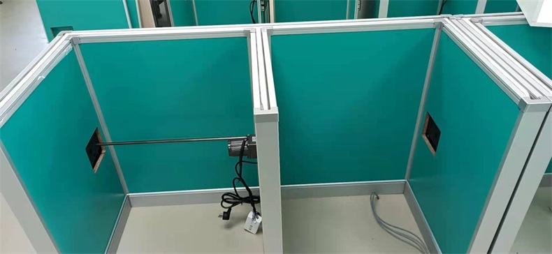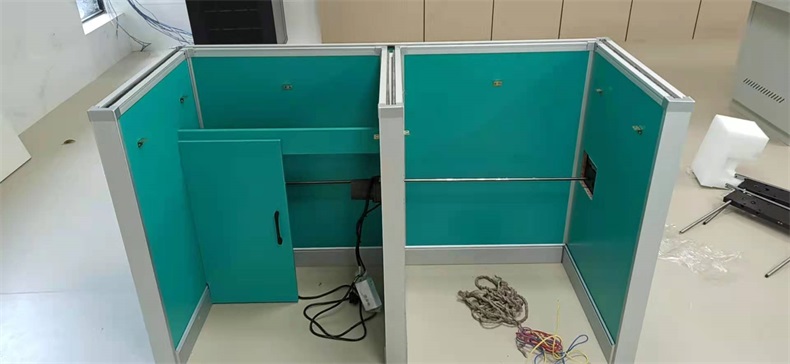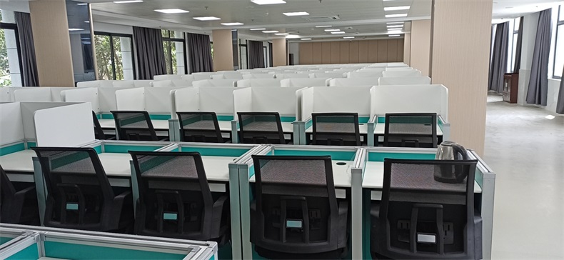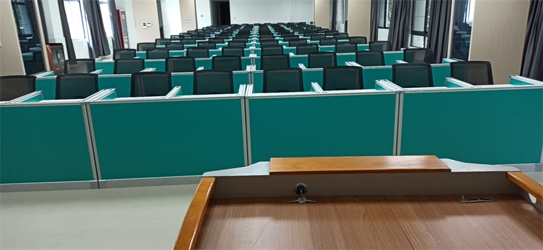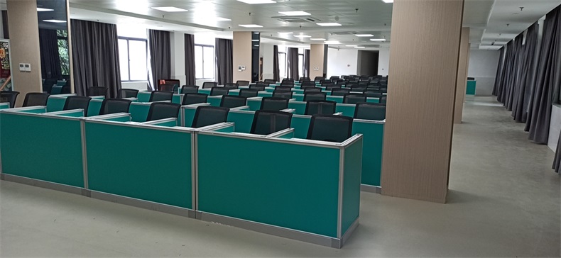 根據陜西寶雞市渭濱區某銀行對于多功能考試培訓室的需求,方方智能為該培訓室設計了可以升降的屏風桌。并采用意味著健康和生命的清新蘋果綠,使整個培訓室讓人感覺到放松和舒適。升降屏風語音聽說測試考場是當今教育部門及企業、事業單位教育及考試重要場所,是新型的科技化教學設備和現代化考試形式相結合的培訓及考試設施。升降屏風桌極大地解決了傳統桌子功能單一的缺點??荚嚂r:屏風升起,用于隔斷相鄰考生視線,每個考生即擁有獨立的空間,降低外界噪音干擾,杜絕屏幕窺視;日常上課時:屏風降下和普通的多媒體教室無異。可實現真正意義上的多變空間一室多用。
