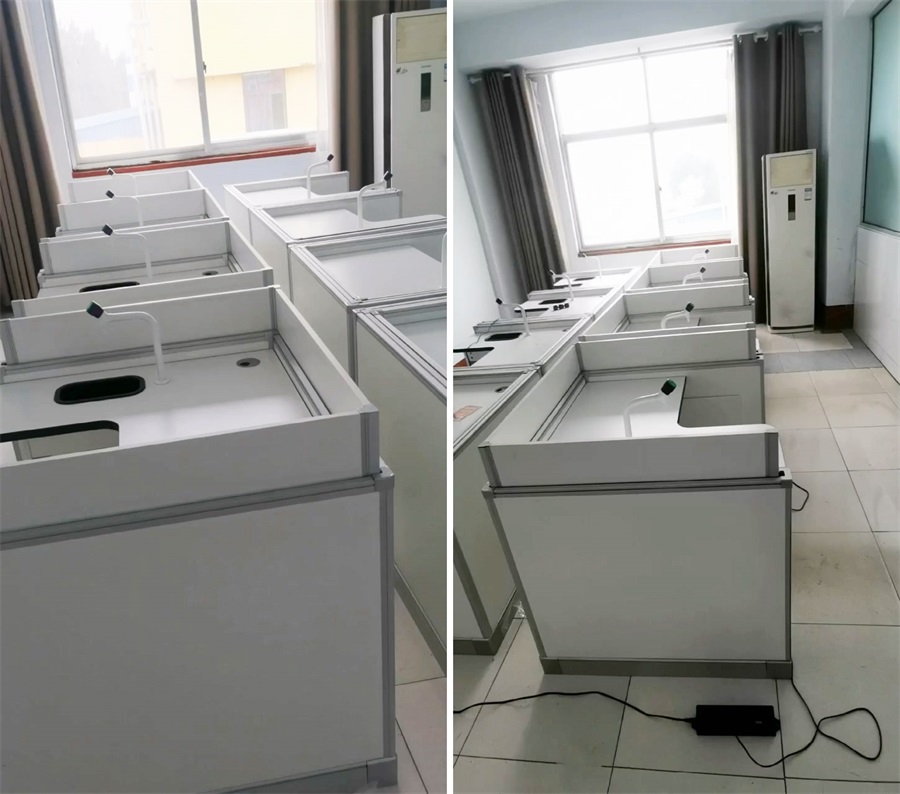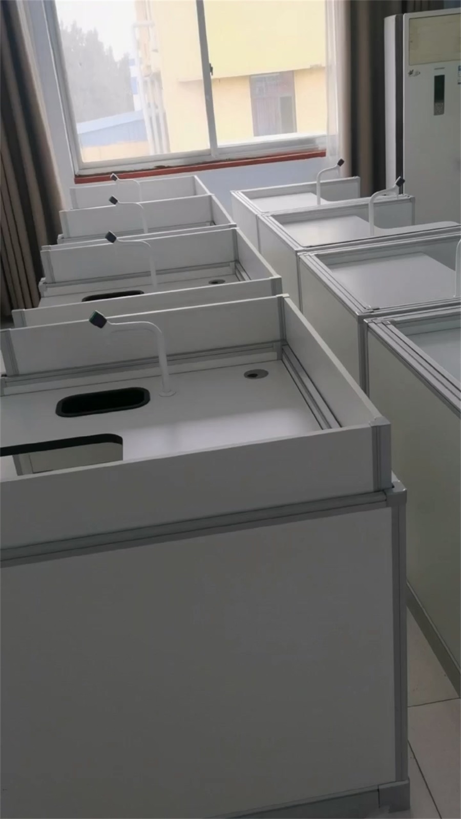 根據(jù)山東陽春啤酒有限公司對升降屏風品酒桌實驗室的使用需求,方方智能對該實驗室設(shè)計了一套可以升降的智能升降屏風品酒實驗桌,每個座位都有可升降的屏風,做實驗時屏風升起后可有效的隔斷相鄰人的正常視線,防噪音效果,可達到互不干擾的作用,當屏風降下時,可以用于日常做實驗后研發(fā)討論和成果的分享。每個座位配有實驗水槽臺,方便在實驗過程中清洗實驗器具。實現(xiàn)了一室多用、多個應用場景一鍵切換。