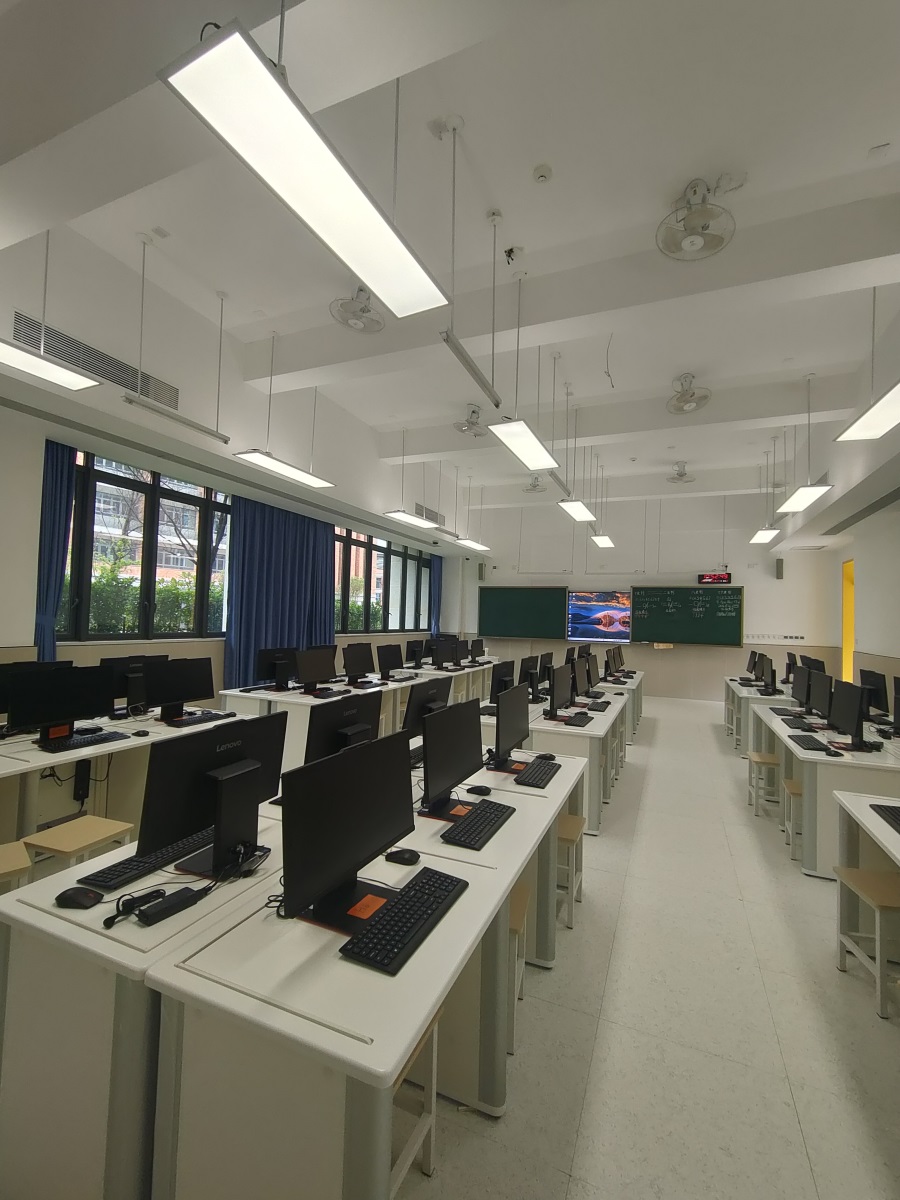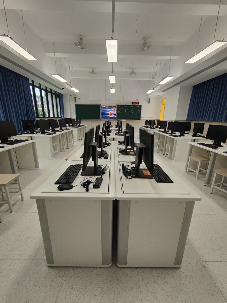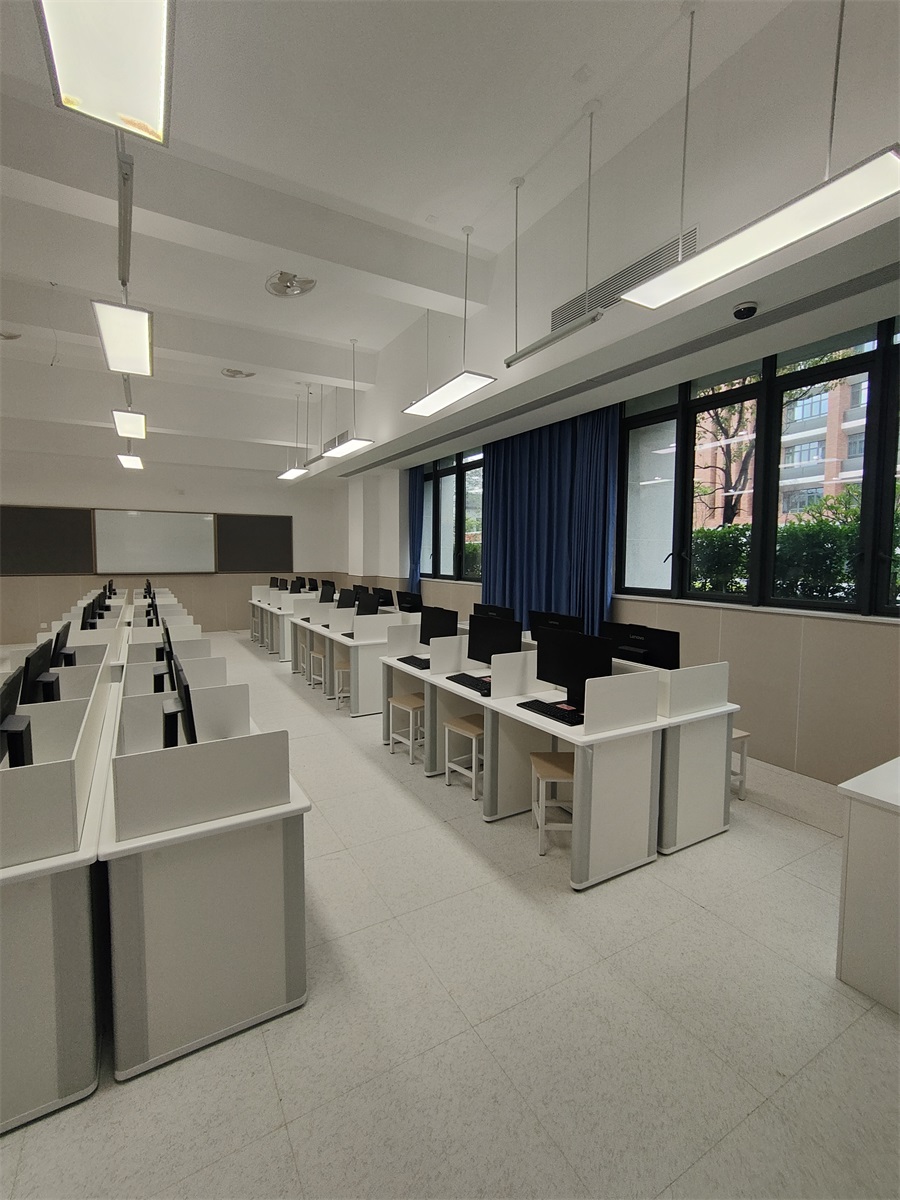 根據(jù)深圳中學(xué)語(yǔ)音教室的使用需求,方方智能對(duì)該語(yǔ)音室設(shè)計(jì)了一套可以升降的智能升降屏風(fēng)桌,該款升降屏風(fēng)是方方智能最新研發(fā)的睿學(xué)款升降屏風(fēng),屏風(fēng)升降行程高度450mm,考試時(shí)屏風(fēng)升起后可有效的隔斷相鄰人的正常視線,防噪音效果,可達(dá)到互不干擾的作用,當(dāng)屏風(fēng)降下降后可與桌面完全平齊,和普通課桌無(wú)異,可以用于學(xué)生日常上課使用。實(shí)現(xiàn)了一室多用、考學(xué)合一