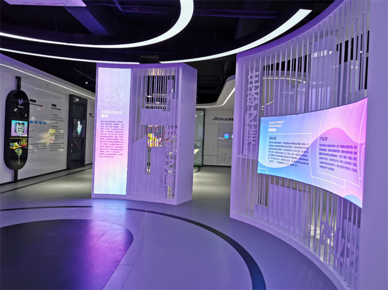 項目背景: 京東集團與衡水市戰(zhàn)略合作,簽訂互聯(lián)網(wǎng)+新經(jīng)濟發(fā)展合作項目,根據(jù)衡水市經(jīng)濟產(chǎn)業(yè)規(guī)劃,集中打造產(chǎn)業(yè)示范展示門戶,將新經(jīng)濟展廳建設(shè)成為衡水市新經(jīng)濟產(chǎn)業(yè)的新名片。 方方智能科技作為項目整體解決服務(wù)商,從創(chuàng)意策劃、展廳設(shè)計、裝修施工、數(shù)字內(nèi)容制作到系統(tǒng)裝配、設(shè)備安裝,一體化實施,為京東云衡水新經(jīng)濟體驗中心打造出功能復(fù)合的展示體驗空間,作為衡水與京東合作成果展示空間;打造線上線下一體化、可持續(xù)更新的衡水新經(jīng)濟體驗空間;以京東云落地為契機,打造持續(xù)性的產(chǎn)業(yè)帶動效應(yīng),塑造衡水?dāng)?shù)字經(jīng)濟發(fā)展地標(biāo)! |