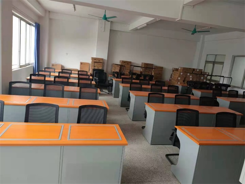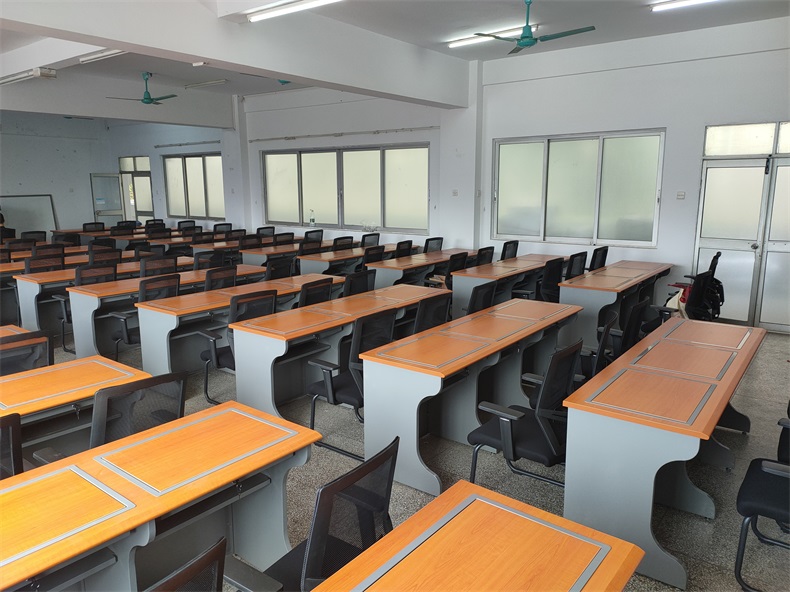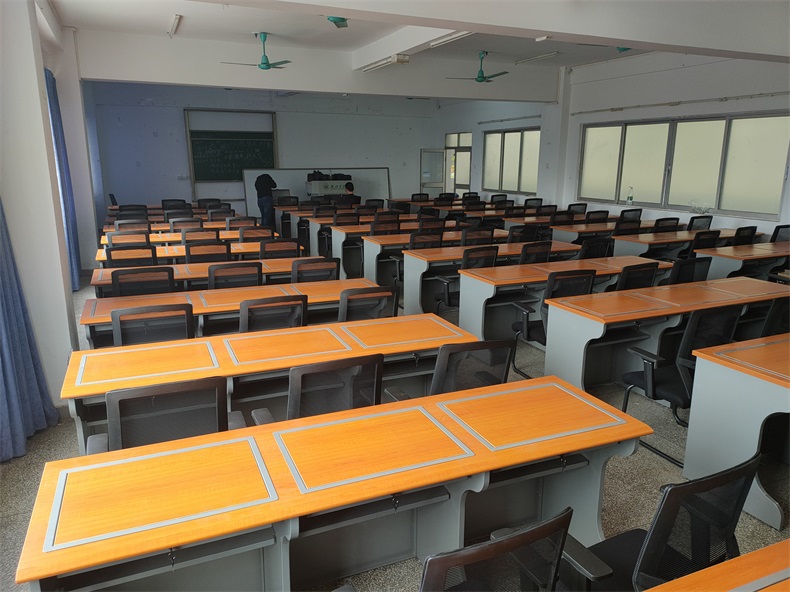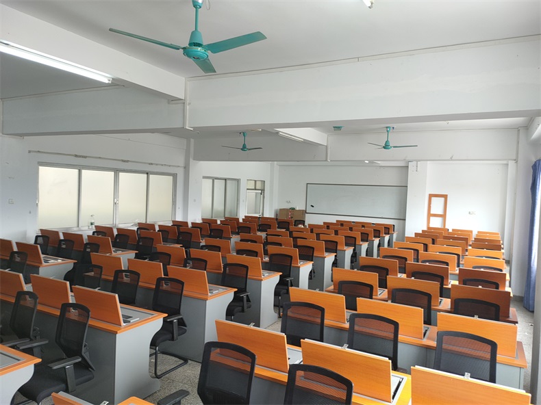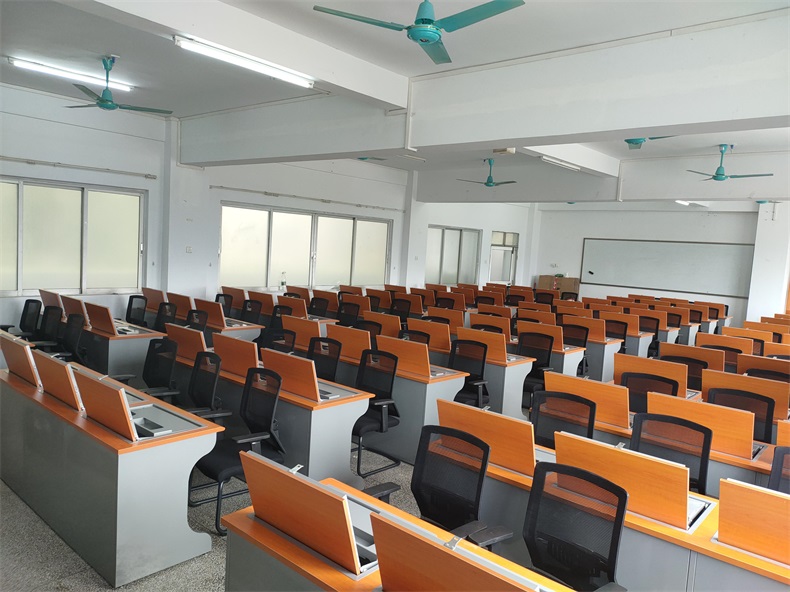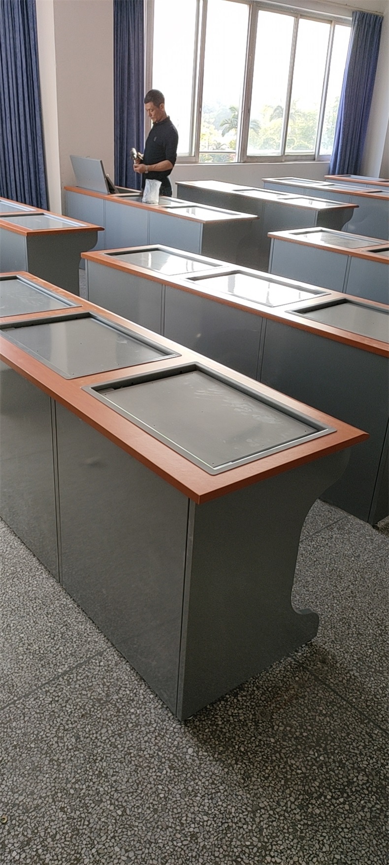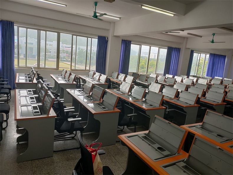 根據(jù)惠州學(xué)院計(jì)算機(jī)教室使用要求,方方智能為該學(xué)校設(shè)計(jì)了電腦翻轉(zhuǎn)桌。翻轉(zhuǎn)器與電腦桌配套使用,拉動(dòng)開(kāi)關(guān)按鈕液晶顯示屏?xí)?/span>動(dòng)翻起,鍵盤(pán)也同時(shí)升起與桌面齊平;當(dāng)不需要使用電腦時(shí),可用手動(dòng)按下翻蓋面板,整個(gè)翻轉(zhuǎn)器與桌面齊平,和普通的教室無(wú)異。產(chǎn)品具有防盜、防塵保持桌面平整,美化桌面等功能,電腦桌內(nèi)還可以存放各類(lèi)文具和學(xué)習(xí)用品,實(shí)現(xiàn)普通教室與計(jì)算機(jī)教室模式相互切換快速,不阻礙老師與學(xué)生之間目光交流,滿(mǎn)足一教室多用的需求
