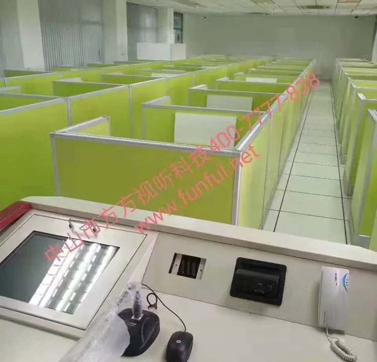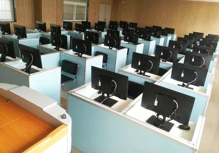 考場機考卡座選用智能升降屏風機考卡座,每張課桌三邊有可升降的屏風,考試時,降屏風升起,每名考生即擁有獨立隔間,既能降低噪音,又能規范考紀杜絕屏幕窺視,保證高考的公平性。