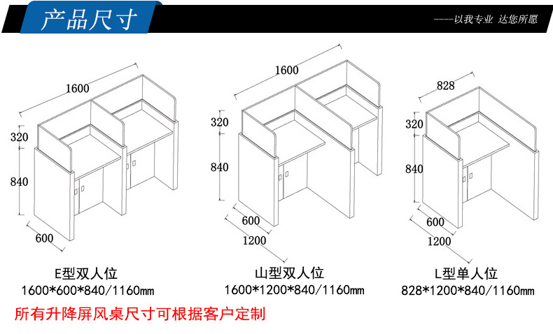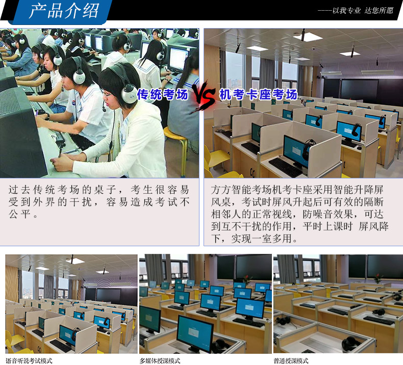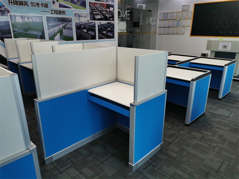 1、*固定屏風(fēng)高度850mm,桌面高度750mm?;顒?dòng)屏風(fēng)行程850-1400mm。形成獨(dú)立空間,起到良好的隔音隔斷效果,確保能最大程度降低相鄰學(xué)生之間考試時(shí)的互相干擾和影響.