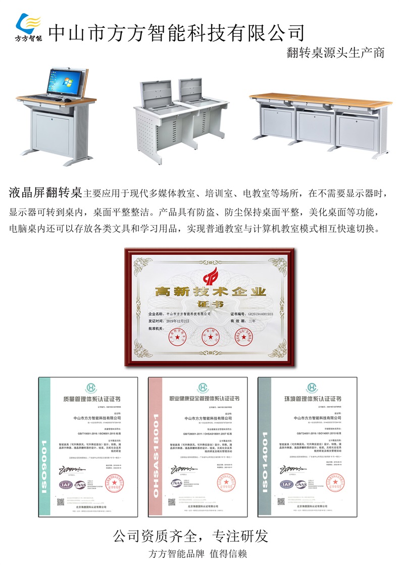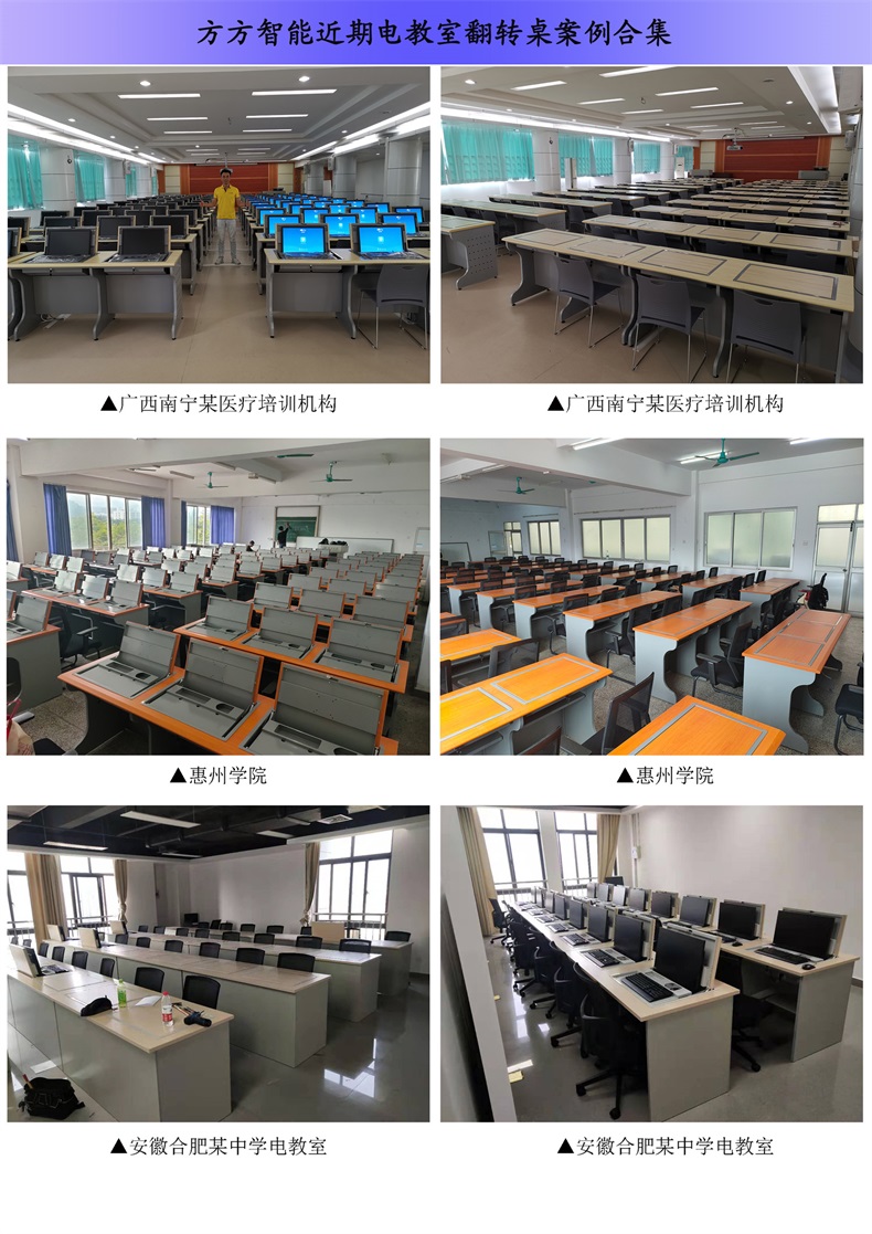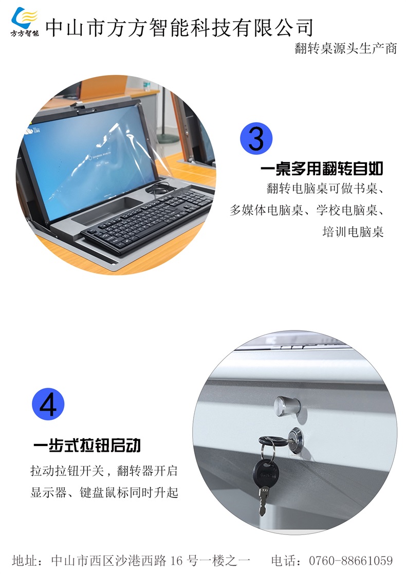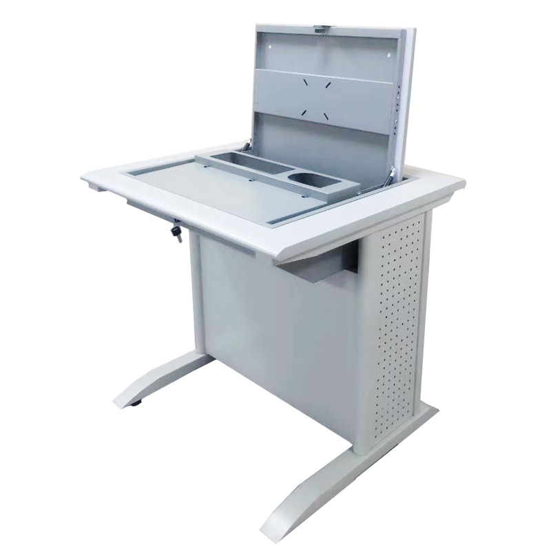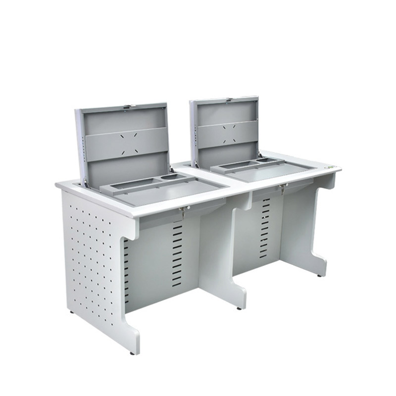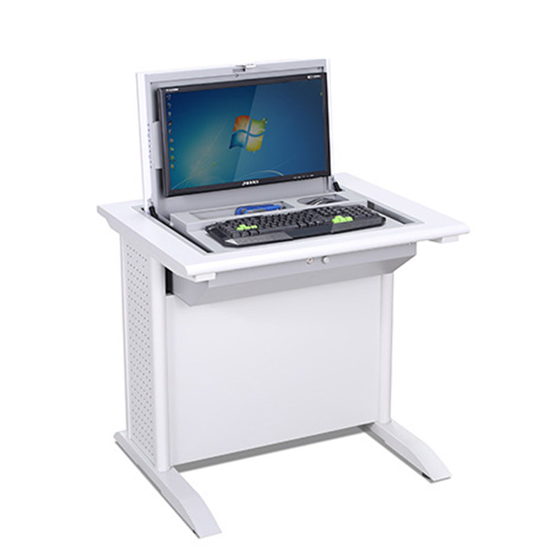 電腦翻轉(zhuǎn)桌,翻轉(zhuǎn)器與電腦桌配套使用,拉動(dòng)開關(guān)按鈕液晶顯示屏?xí)?/span>動(dòng)翻起,鍵盤也同時(shí)升起與桌面齊平。當(dāng)不需要使用電腦時(shí),可用手動(dòng)按下翻蓋面板。整個(gè)翻轉(zhuǎn)器與桌面齊平,和普通的教室無異,產(chǎn)品具有防盜、防塵保持桌面平整,美化桌面等功能。電腦桌內(nèi)還可以存放各類文具和學(xué)習(xí)用品,滿足一教室多用的需求。 資訊熱線:0760-88661059